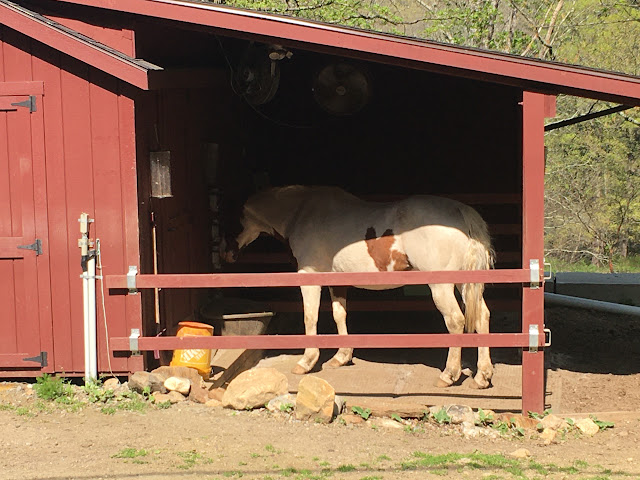 While on South Road I saw a horse occupied with eating and uninterested in me.
